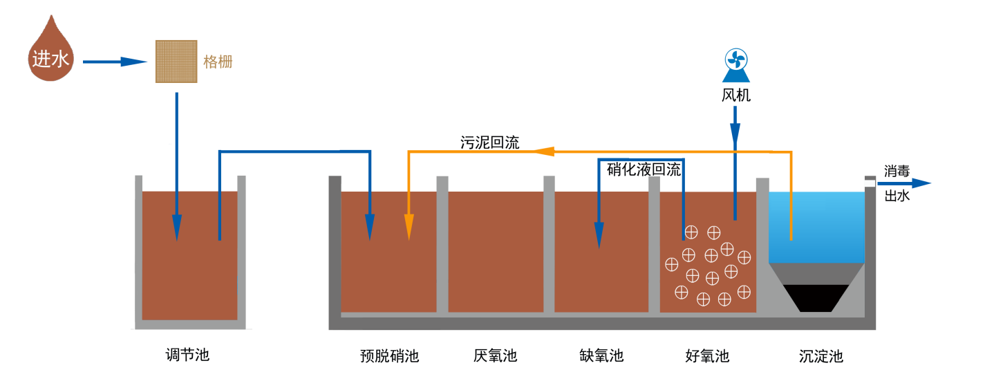 新型UCT一体化高效生物反应器,采用改良型UCT工艺结合改性MBBR生物膜工艺,提升了传统的A2/O工艺脱氮除磷效果。设备运行维护简单,出水可稳定达到《城镇污水处理厂污染物排放标准》(GB18918-2002)一级A标准。